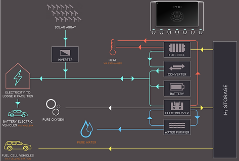 HYDI engineers can develop a system for any need and with our partners we can assemble, build up and install the HYDI System wherever needed. HYDI focuses on renewable energy systems for businesses and industry. Our clients include those in leisure and tourism, governments, and large infrastructure projects.